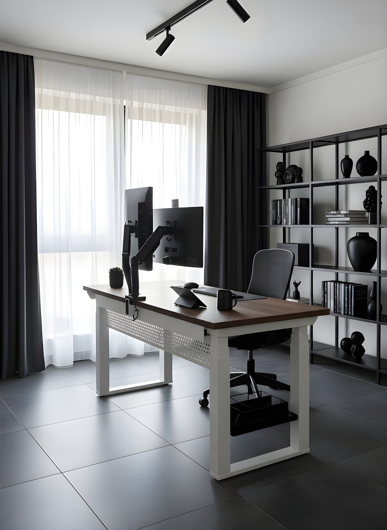 Este accesorio realmente libera tu escritorio, crea muchisimo espacio y el tener la laptop y el segundo monitor a la altura correcta protege mi postura y mi estresado cuello. Mi escritorio se ve mas ordenado y estetico.